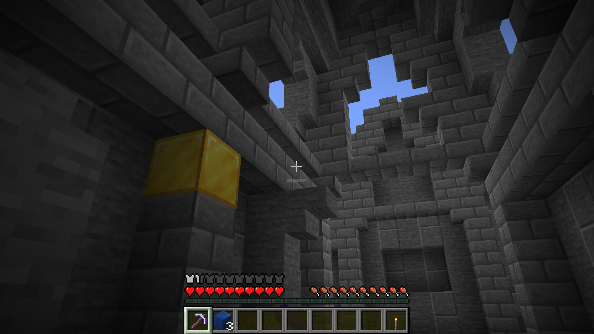 All 3 of these blocks should have been picked up here, but since the datapack thought the player was looking at a different block, it never detected it was broken.