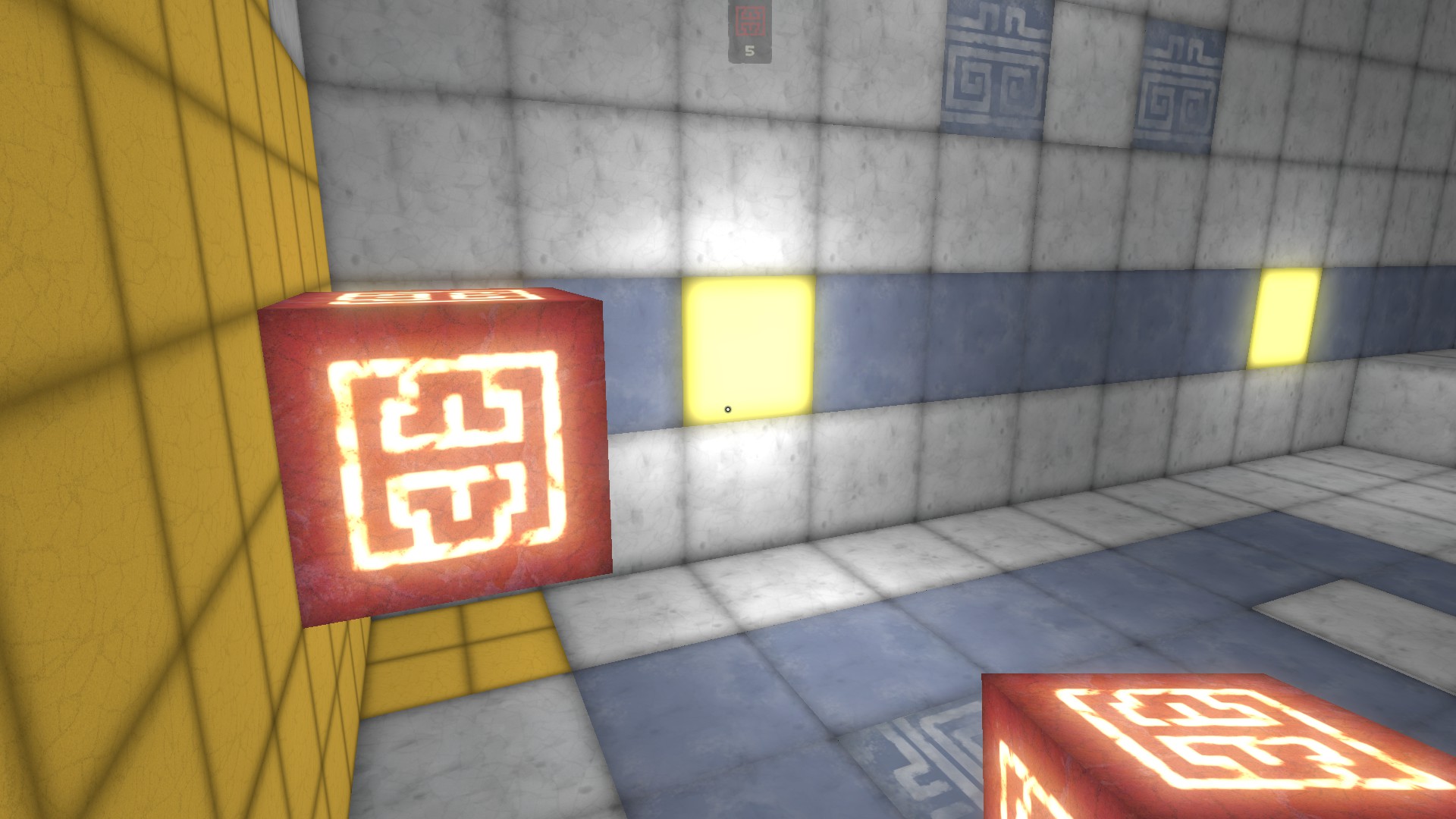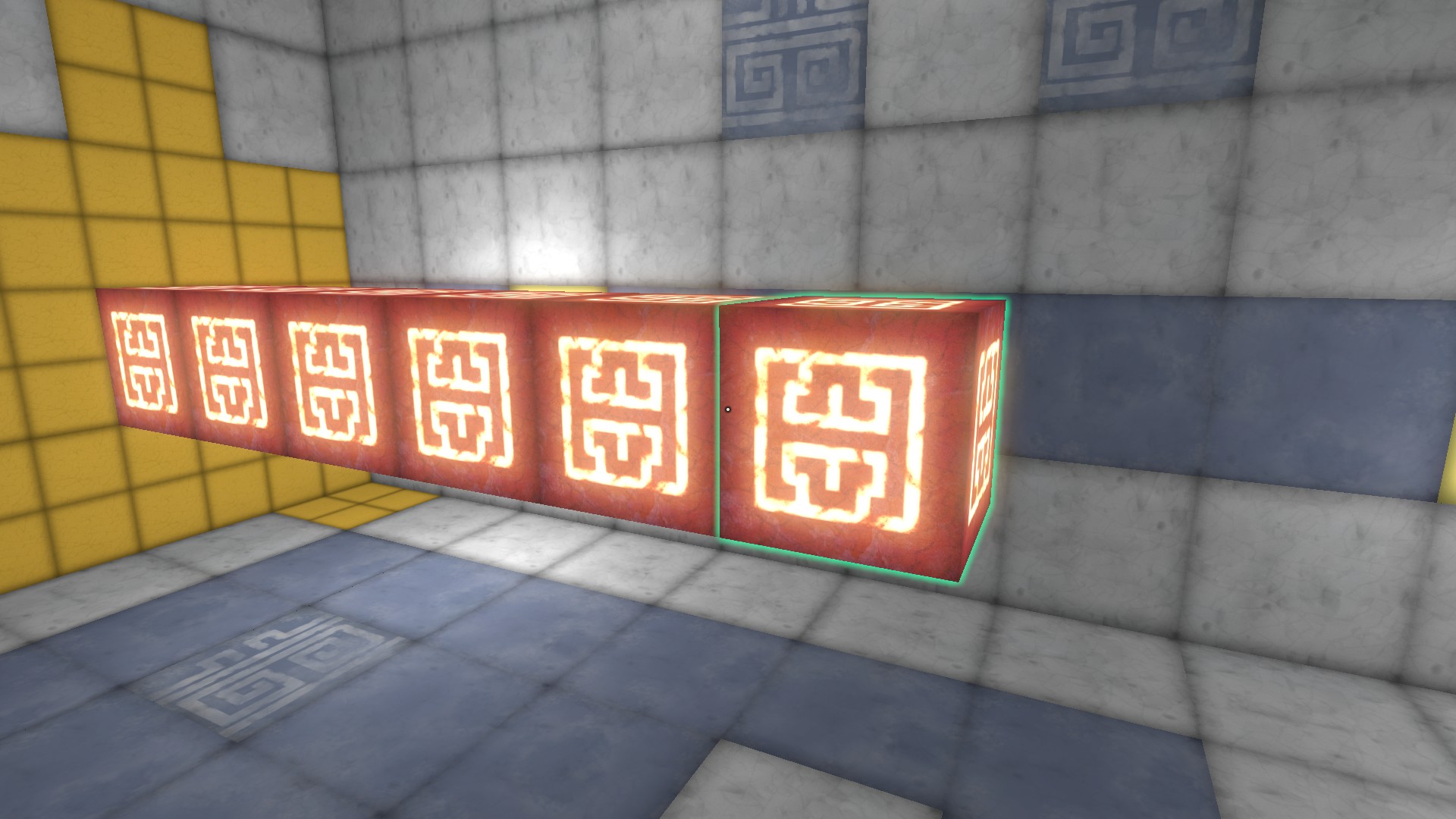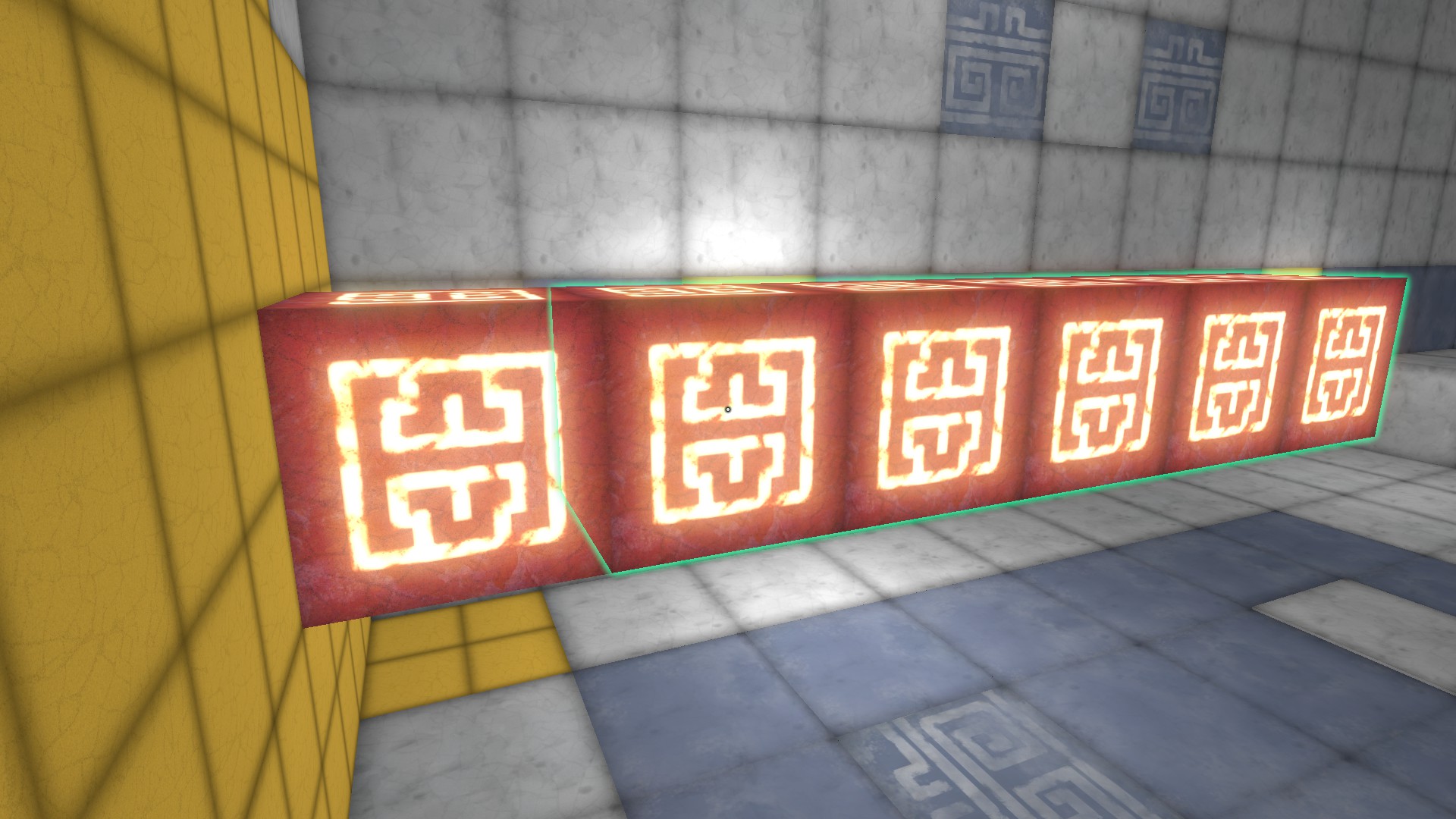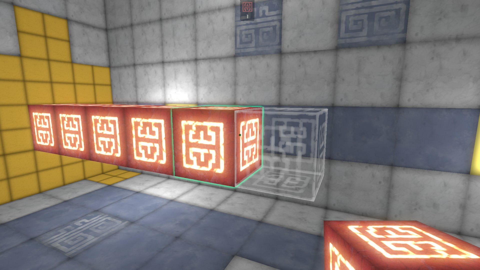 This entity can then move around however I need it, and this creates a decent illusion of a moving block. If a player is standing on top of it when it moves upwards, the player will fall through, so I had to write some hacky code to also move up any players that were standing on one of these upward-moving cubes.